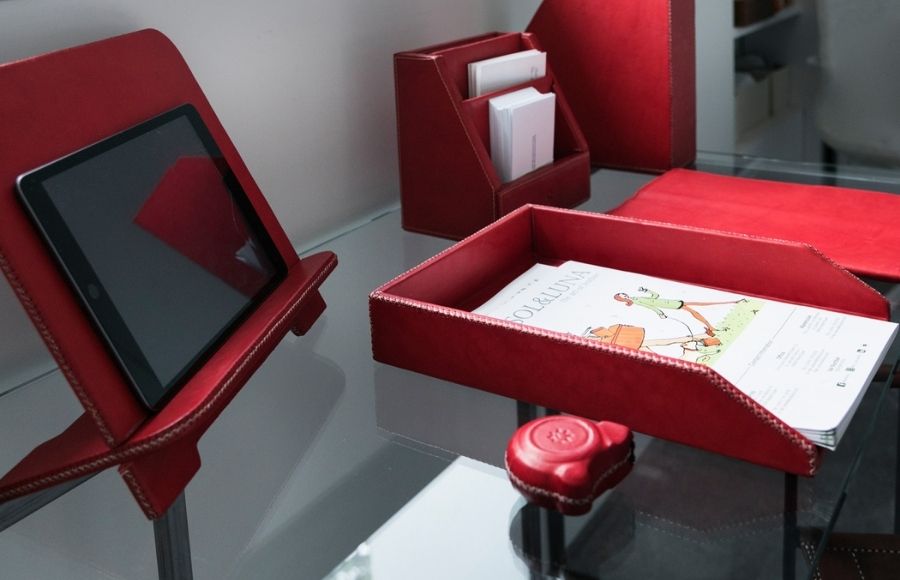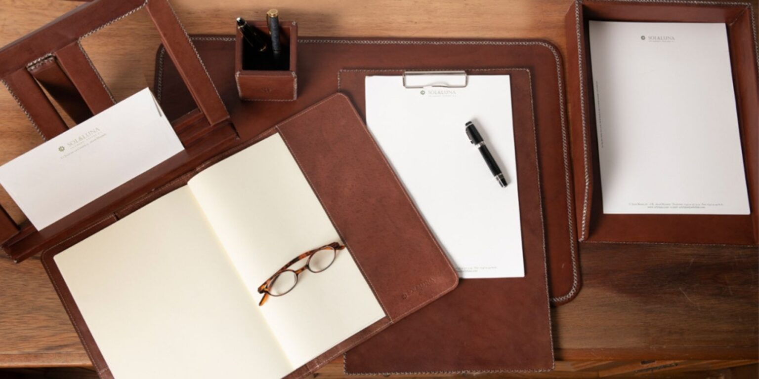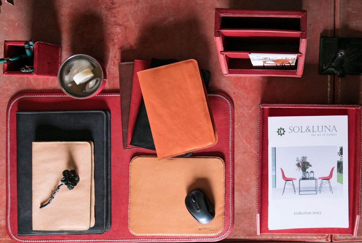 Sol&Luna once again has turned leather into an Art developing a whole line of leather desk accessories, which, in addition to being functional, it is ideal to decorate any workspace at home: paper trays, note organisers, writing sets, pencil holders, book stand, etc.