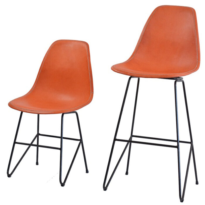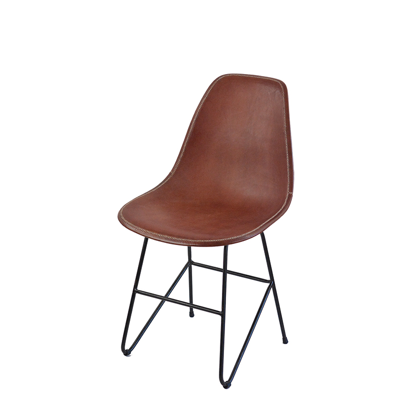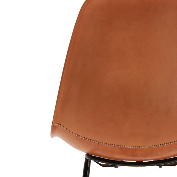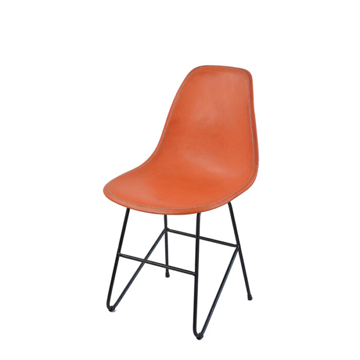 Description: Chair with iron frame and seat covered in leather. Available in natural, brown, black, red and orange leather.