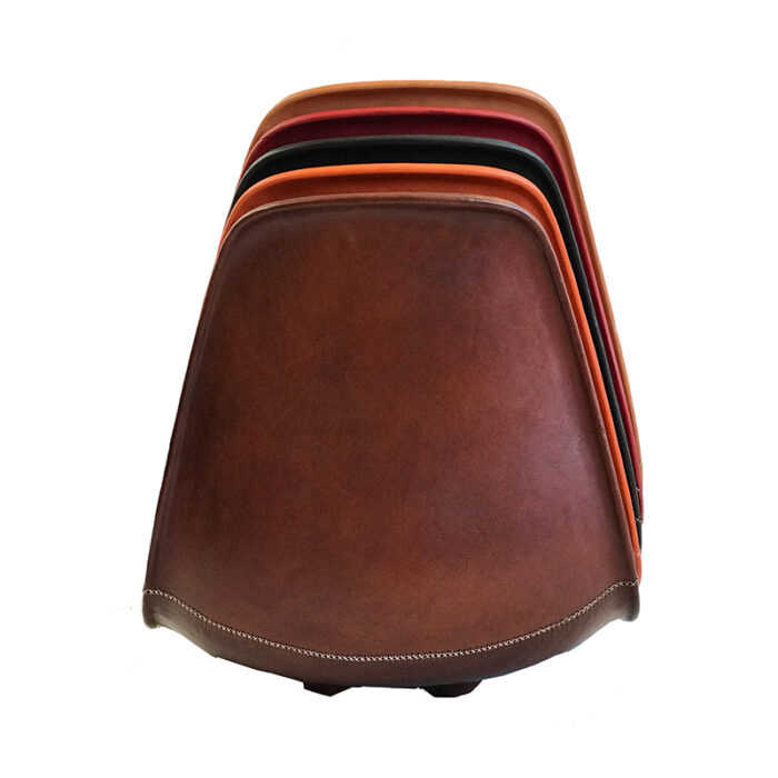 Description: Chair with iron frame and seat covered in leather. Available in natural, brown, black, red and orange leather. Also available Chair Ñandutí Luxe with cushion (PN808X).