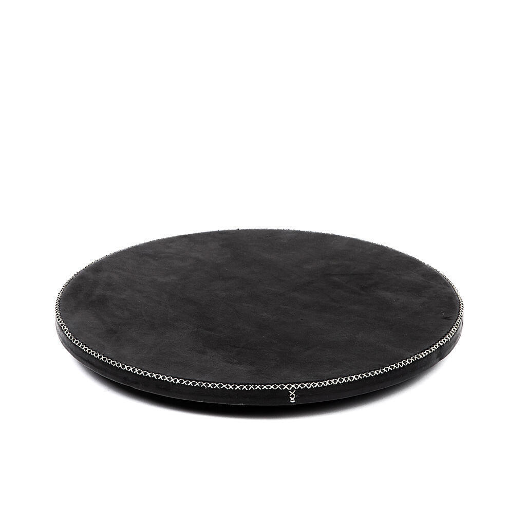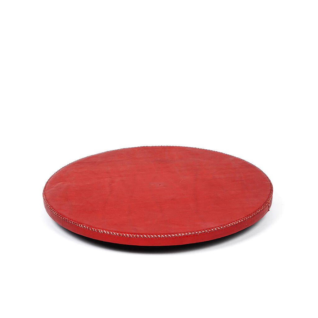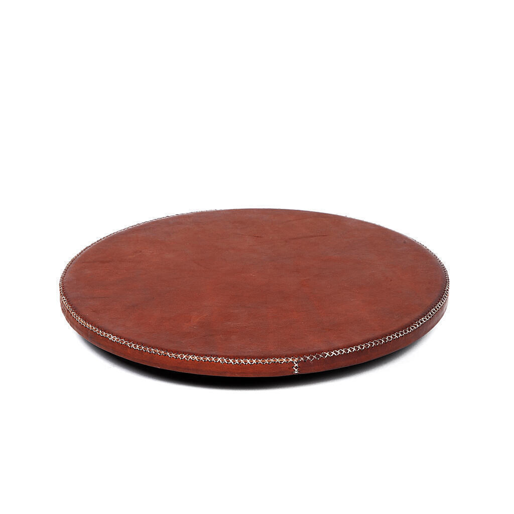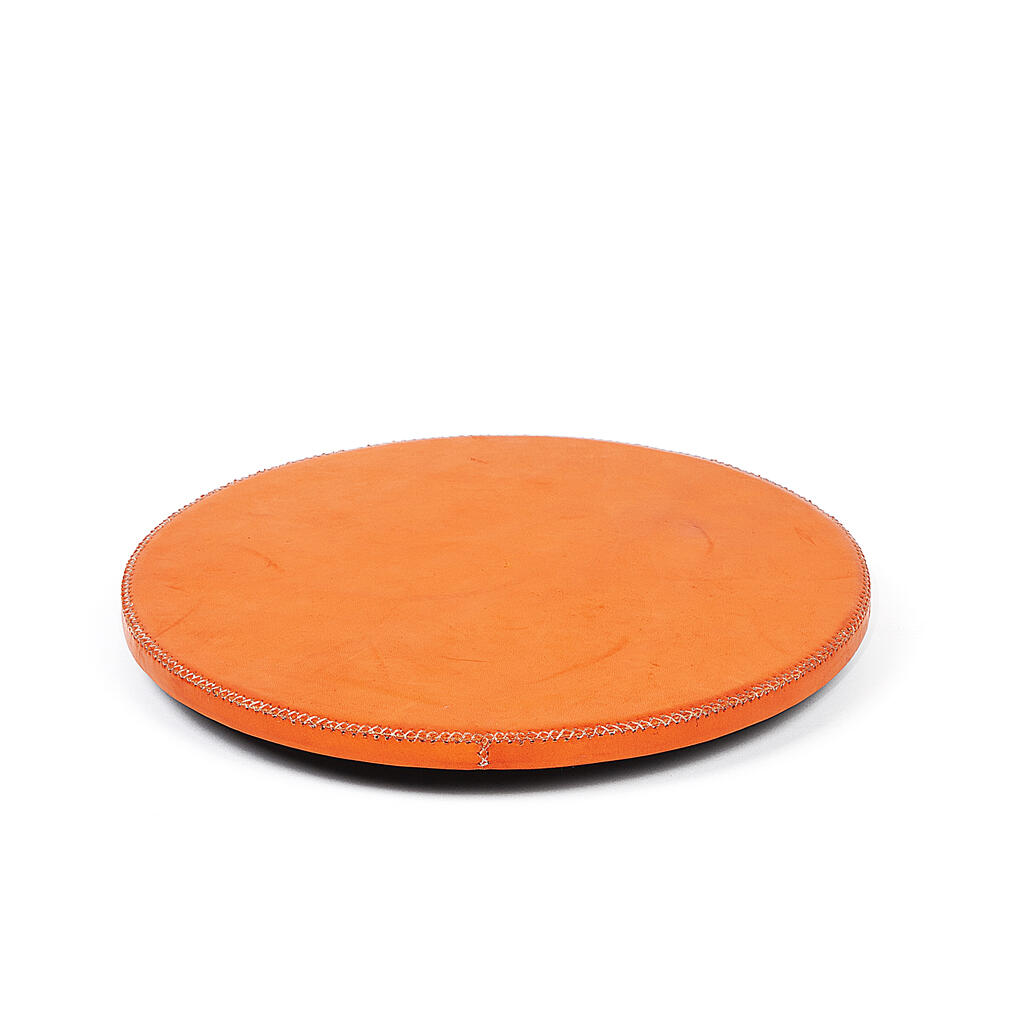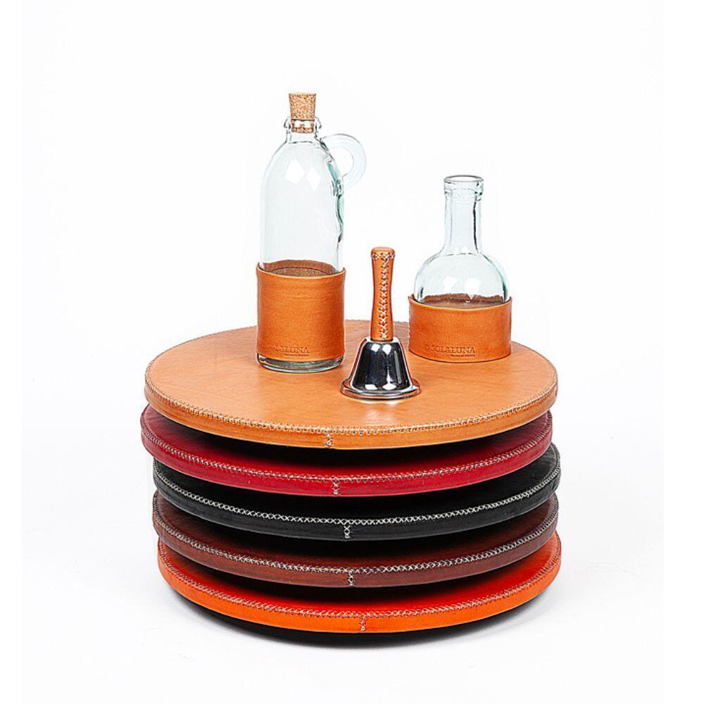 Description Round Lazy Susanne covered in leather 35Ø cm. Available in natural, brown, black, red and orange leather.