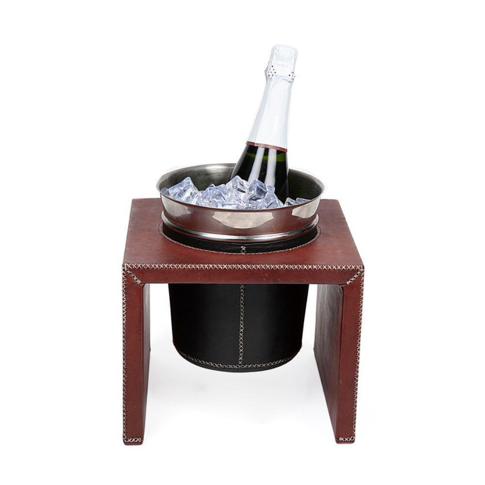 Description: Stand for Silver champagne bucket completely covered in leather. Available in natural, brown, black, red and orange leather. Also available Silver champagne bucket (PN947)