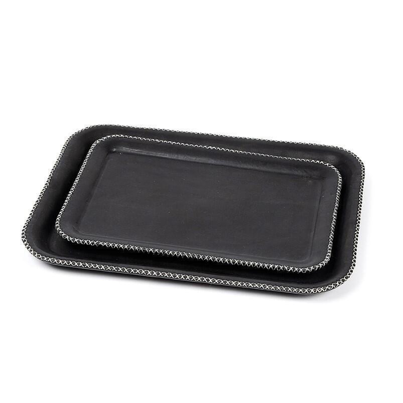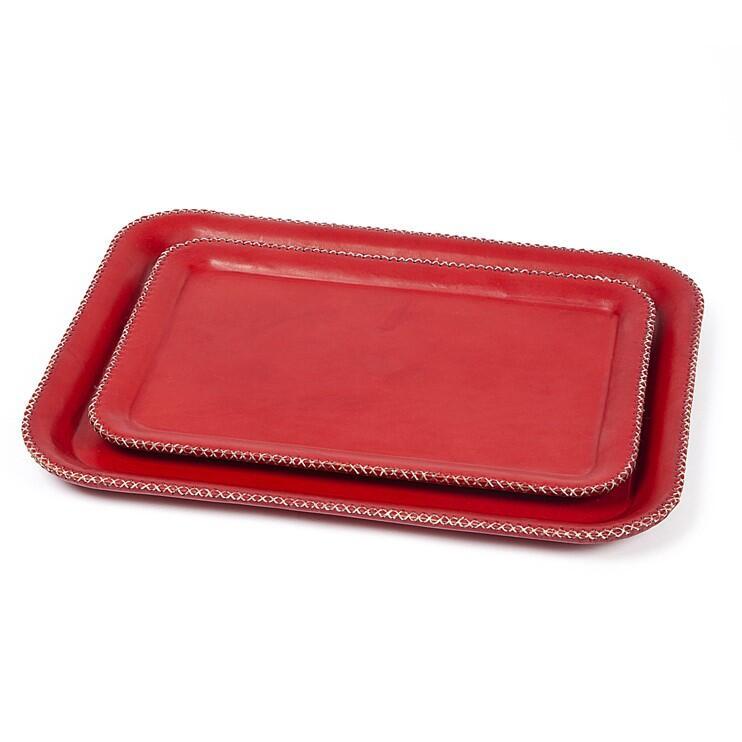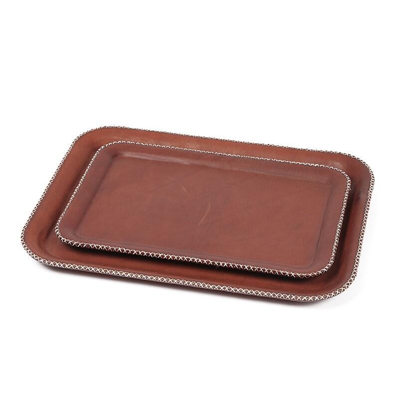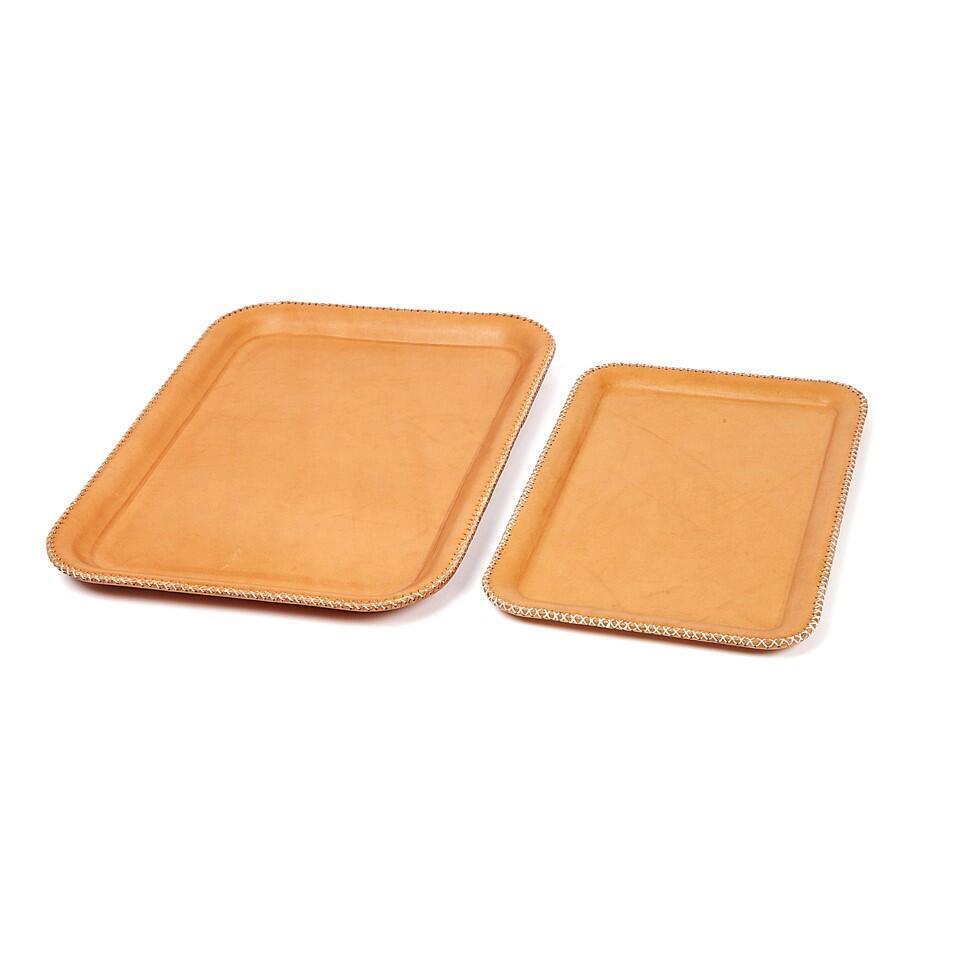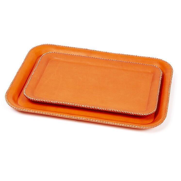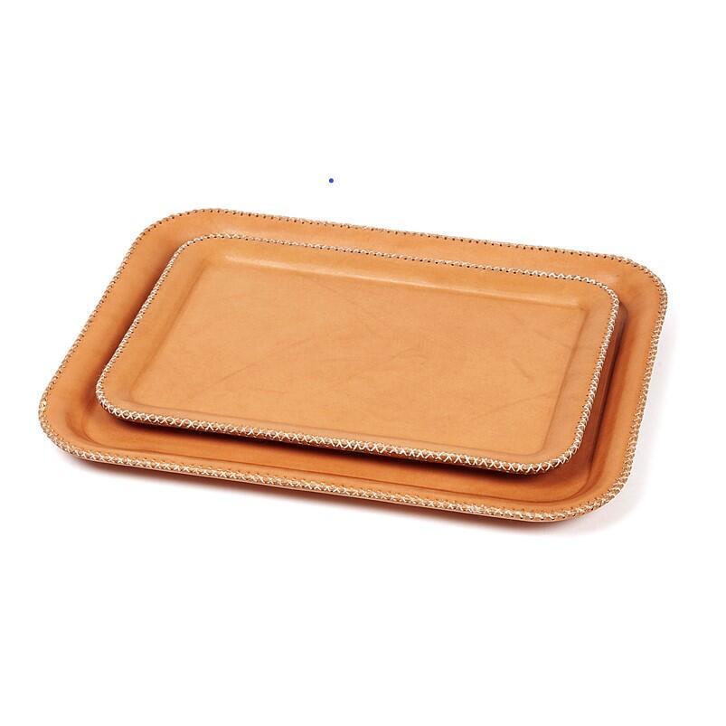 Descripción: Bandeja Rectangular Grande forrada de cuero. Disponible en cuero natural, marrón, negro, rojo y naranja. También disponible Bandeja Rectangular Pequeña (PN904S).