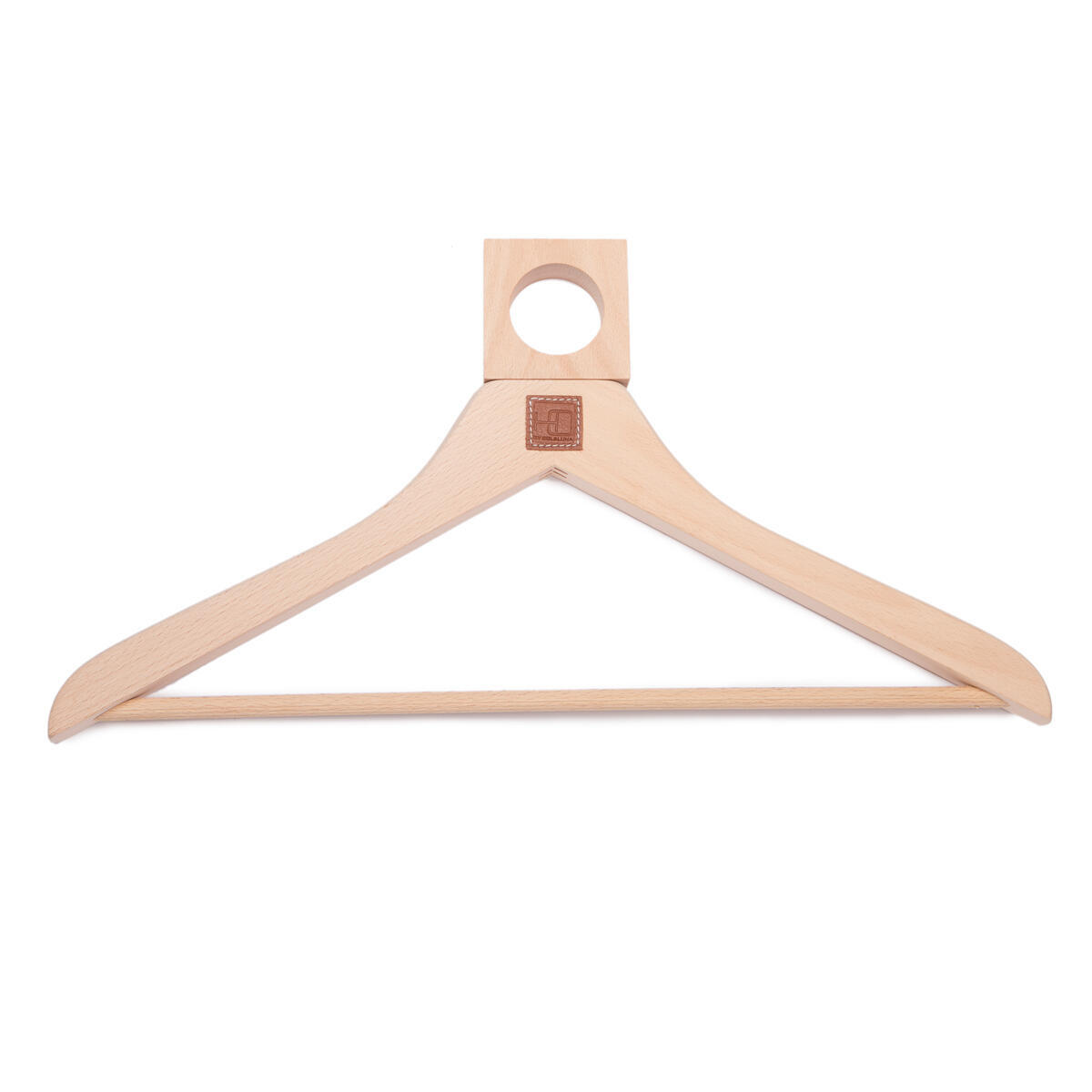 Descripción: Percha en madera natural de haya especial para chaquetas, pantalones y camisas. Sistema de imán antirrobo para hoteles.