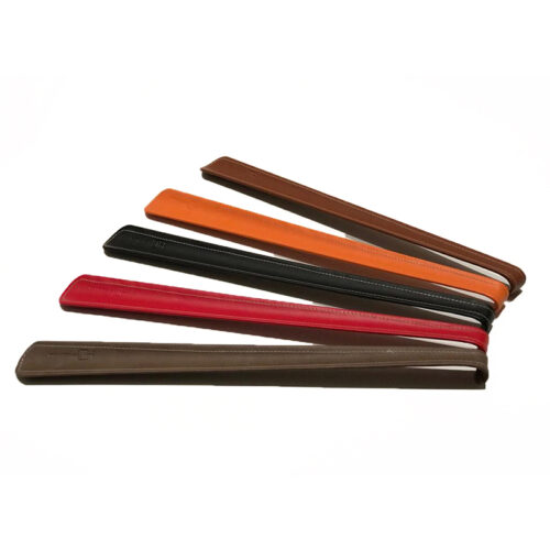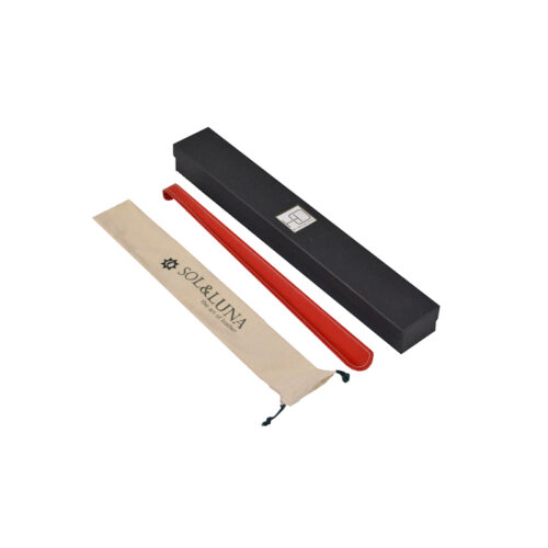 Description: Large metal shoehorn covered in leather. Comes with a cover in a gift box. Available in brown, black, red, orange and taupe. Also available Shoehorn Small – H201.