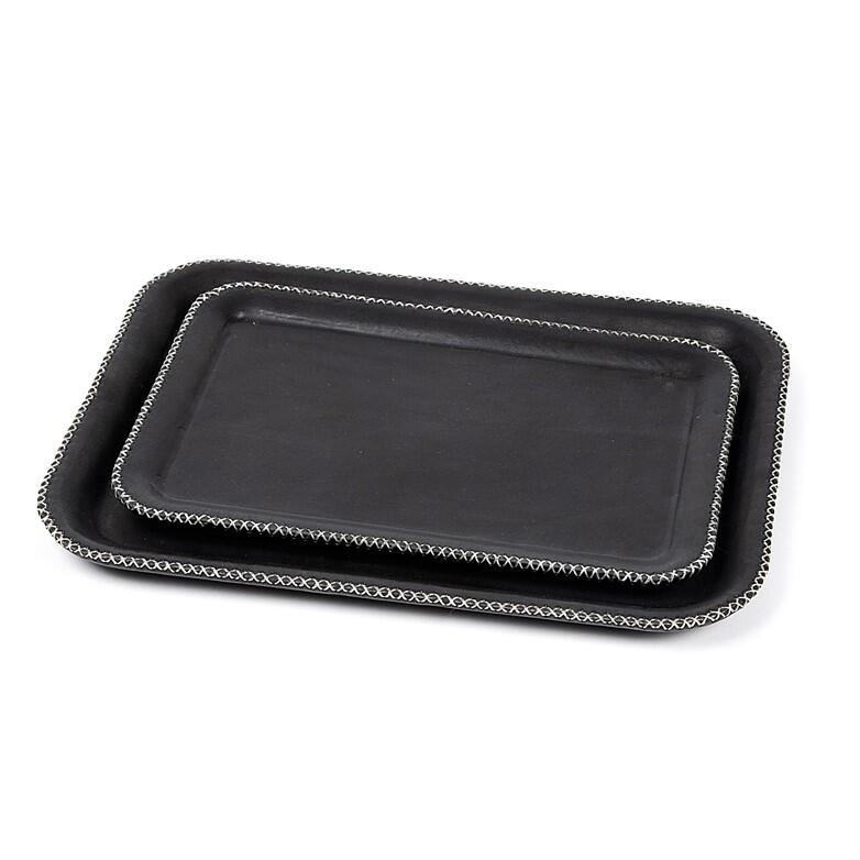 Description: Small Rectangular Tray covered in leather. Available in natural, brown, black, red and orange leather. Also available Large Rectangular Tray (PN904L).